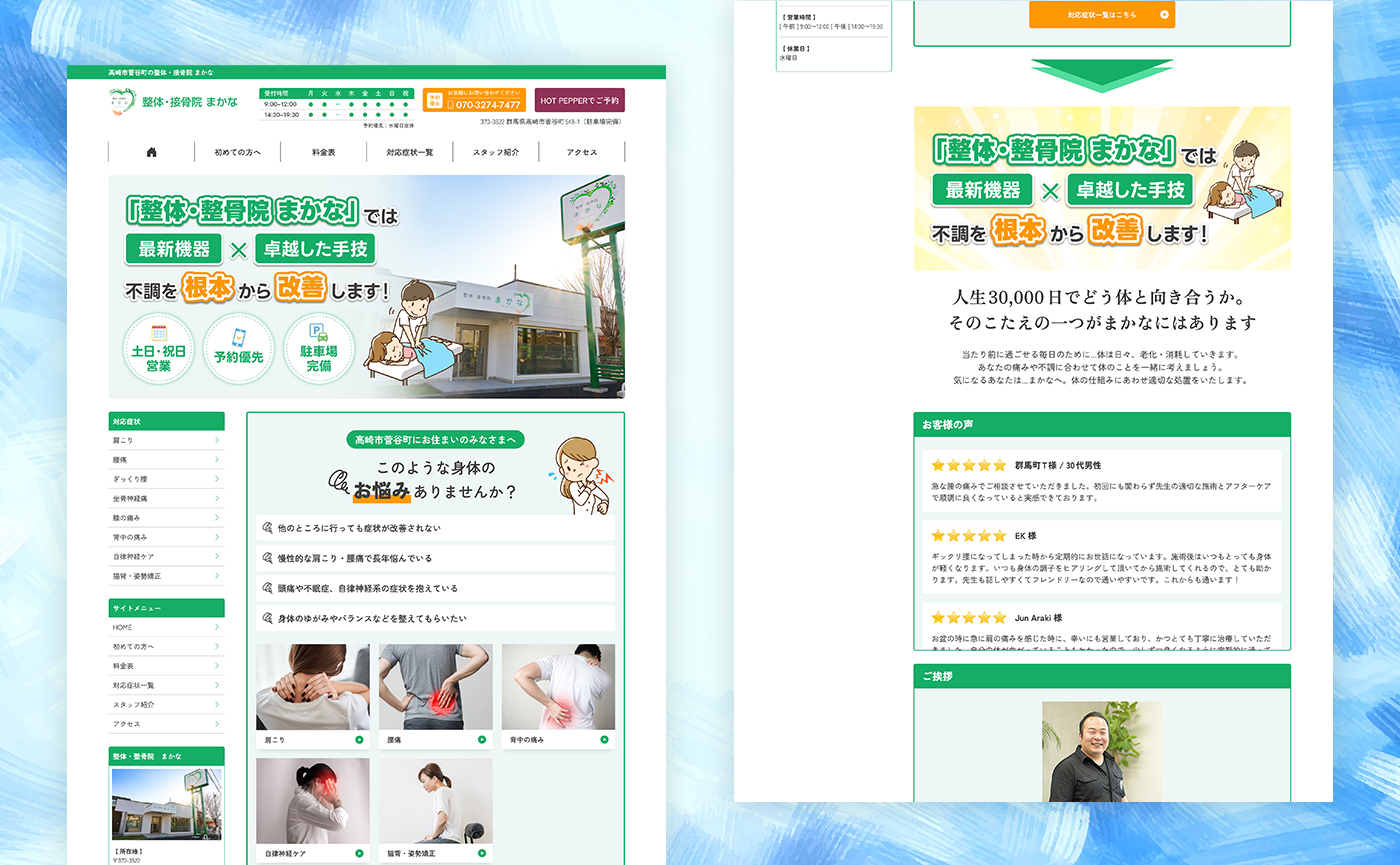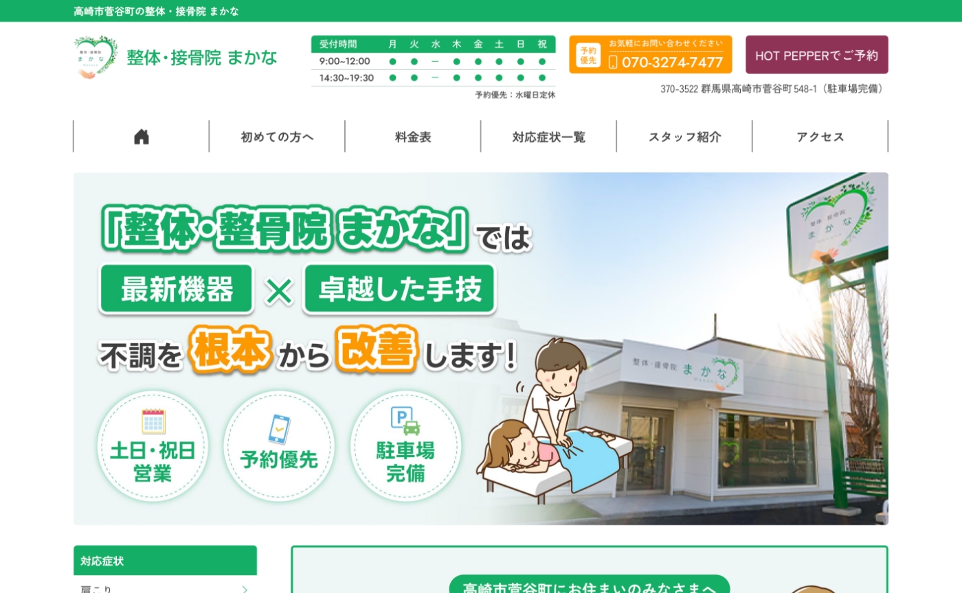 高崎市菅谷町の整体・接骨院 まかな様は、ホームページをリニューアルをいたしました。